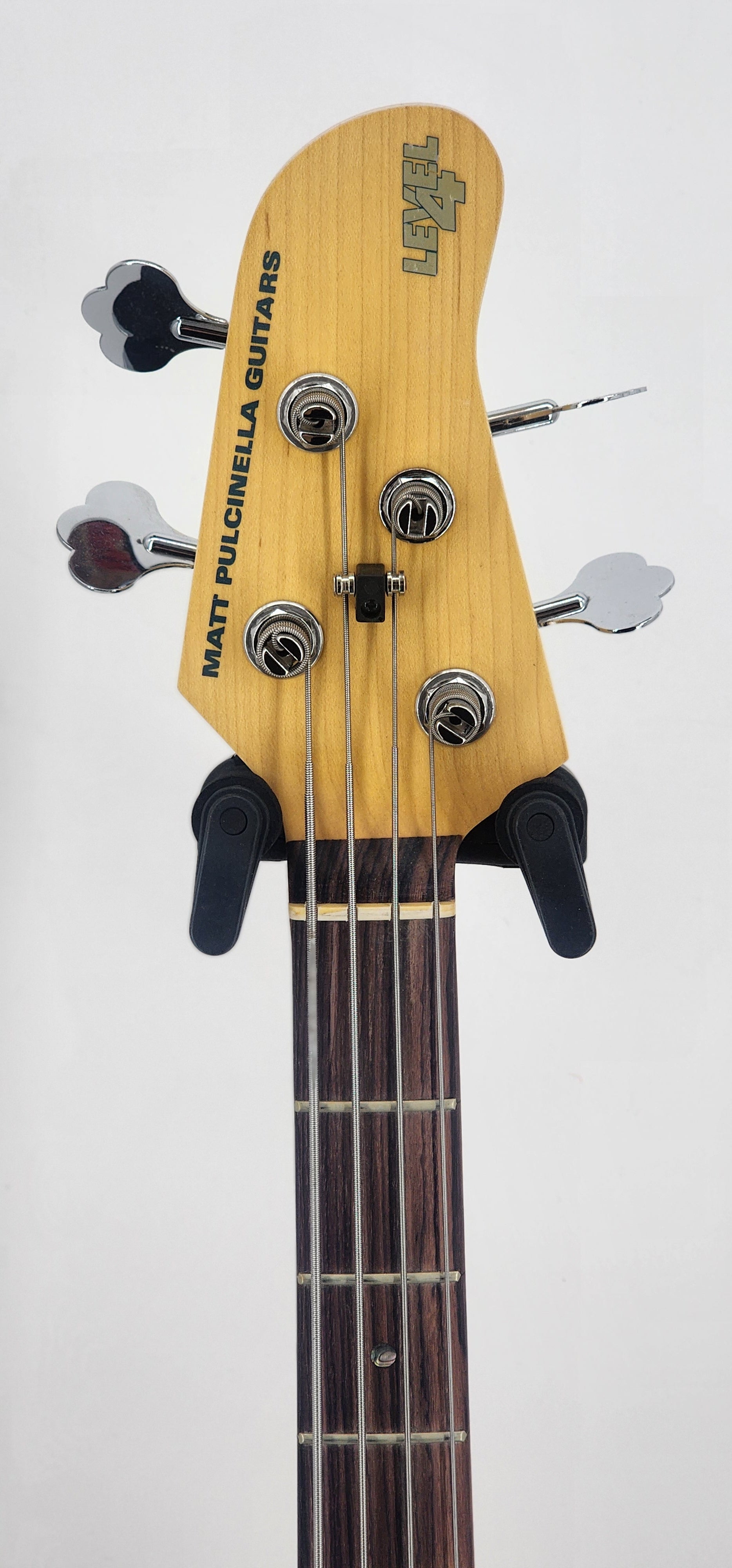 We bought this one direct from Matt Pulcinella who is a friend of the business. This guitar is this close to mint, out of the box condition. We do not call anything mint. Set up by Matt this is ready to go. GREAT BASS, 9v active with a very wide tonal signature. Plays fantastic and has a gig bag. 9.0 lbs. Bass is super clean with nothing to mention.