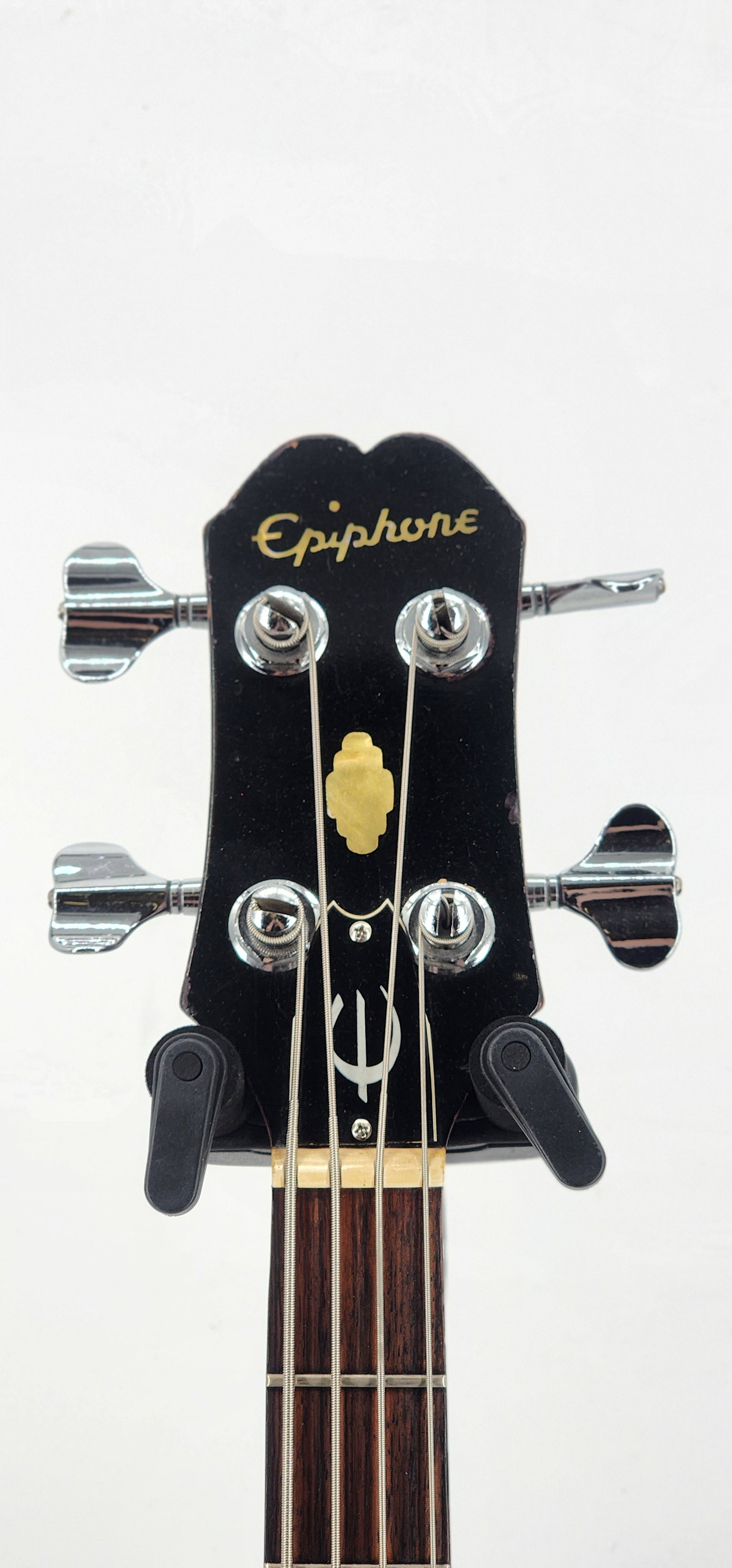 Want a GREAT bass, here it is! Never broken, never reset - The head and the heel are just fine and always was. Many of these play like trucks, this one is a fine player and is actually in nice shape. Like all working man basses she's had some work. The tuners were swapped to Grovers and the shafts do not look ridiculous. It had what looks to me a moved thumb rest (not sure but most likely - see photo). The reason Im not 100% certain it was a thumb rest is because there is no outline mark from a thumb rest. The holes were filled and touched in. The push button was replaced with a 3 way toggle - The Up position is the pickup with no boost. The Down position it boost on as expected and still has a level of sonic clarity. The middle is a dub that makes communication with whales possible and had Robbie and Family man smiling. This bass nails the late 60 British tone and the good reggae tonal dub. She plays really well and looks great with the right amount of wear and patina. This is a good one.