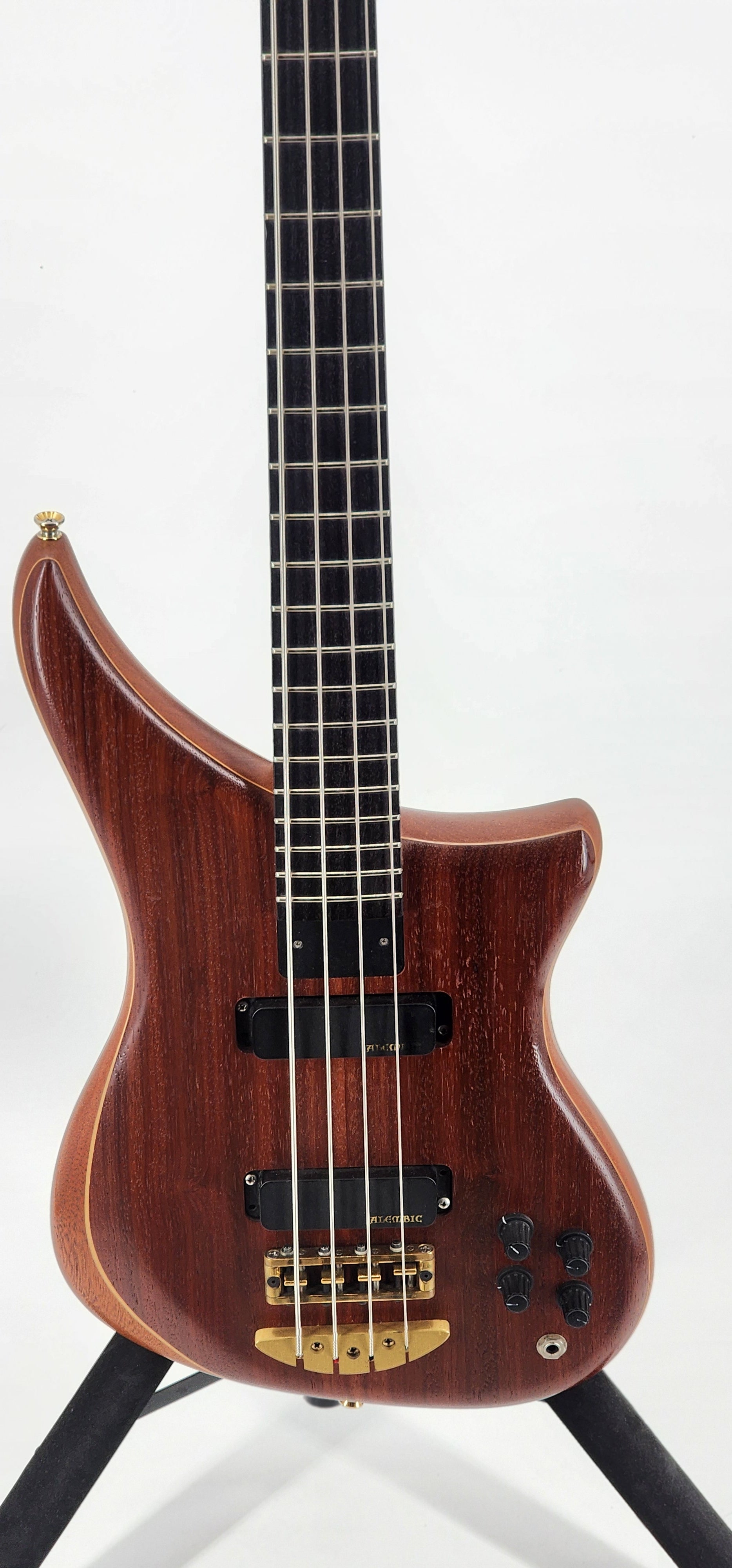 We have a really nice Alembic with INSANELY low action and every note rings. 8.4 lbs which is very light considering the walnut body. Everything works as expected. Just set up, new stings, new battery. Comes with a new Gator tolex case. For being is service about 30 years, the bass shows extremely well. Just minor player wear with a small mark here and there.... Very minor back wear (I mean super light wear)....