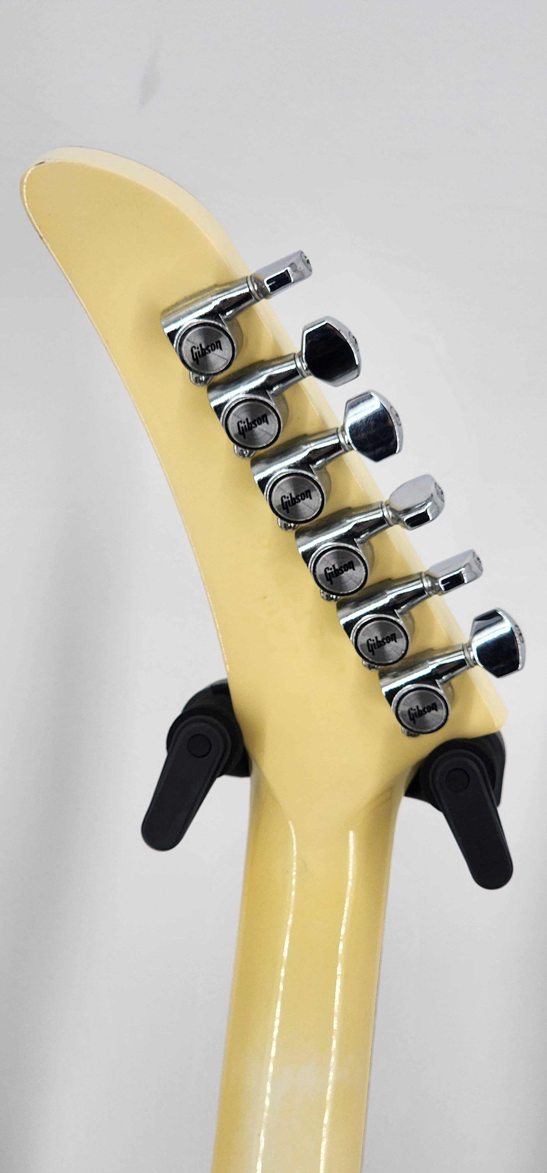 is a vintage electric guitar known for its distinctive design and rock/metal sound, with models from that era often featuring a mahogany body and neck, rosewood fingerboard, and a Slim Taper neck profile.