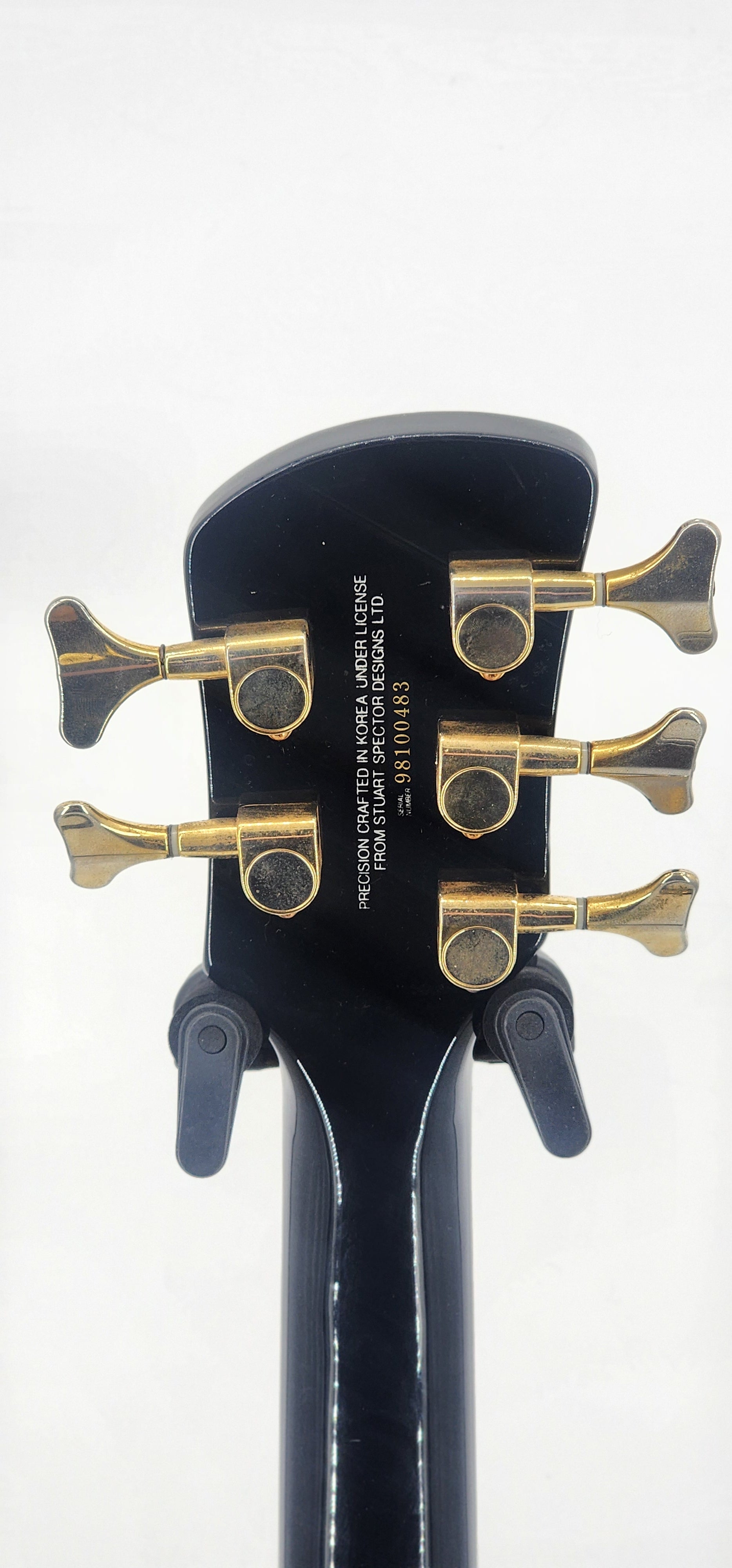 This is a good one! No ooops damage, no checking, no chipping. The bass is showing minor wear and player patina. Keep in mind she's over 35 years old, black and was gigged. Typical finish wear to the gold hardware. Set bass up to perfection with fresh strings and new battery. The neck is straight, the truss rod works fine. Even has a hard case. Nice bass at a nice price.